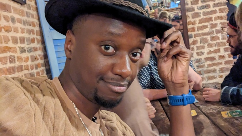 Me smiling because I'm surrounded by my friends.